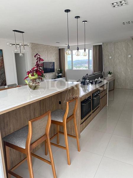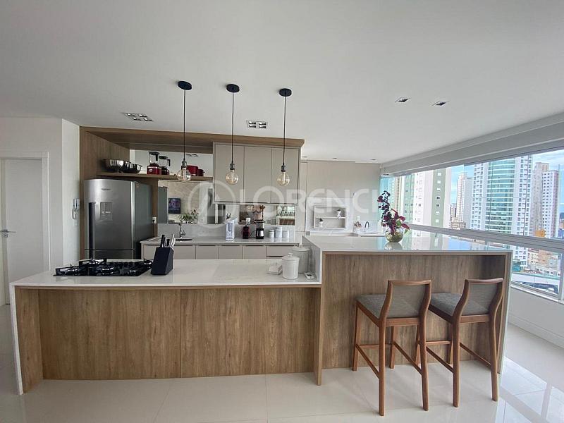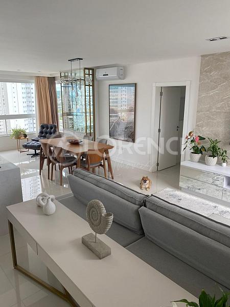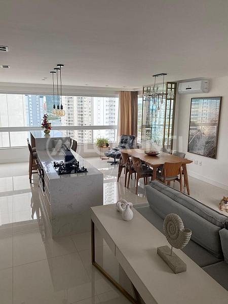 Apartamento semi mobiliado na Barra Sul de Balneário Camboriú/SC, no Edifício Royal Garden, possui 134m² privativos, 03 suítes, sala de estar e jantar, sacada integrada com churrasqueira a carvão, cozinha, área de serviço e 02 vagas privativas de garagem.