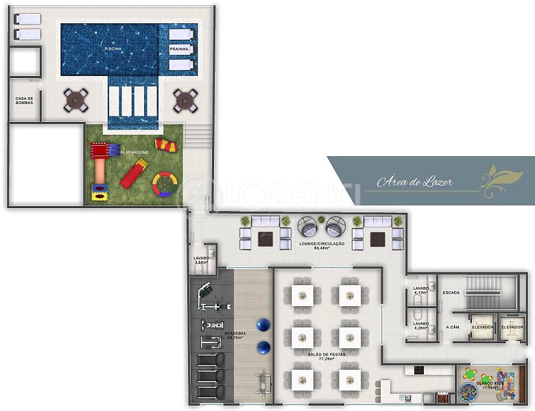 -Piso porcelanato nas áreas sociais, e vinílico nos dormitórios;