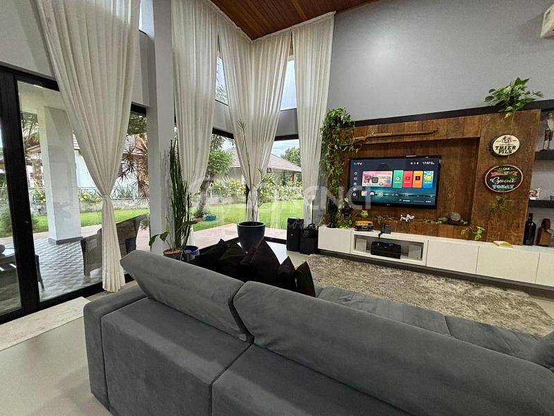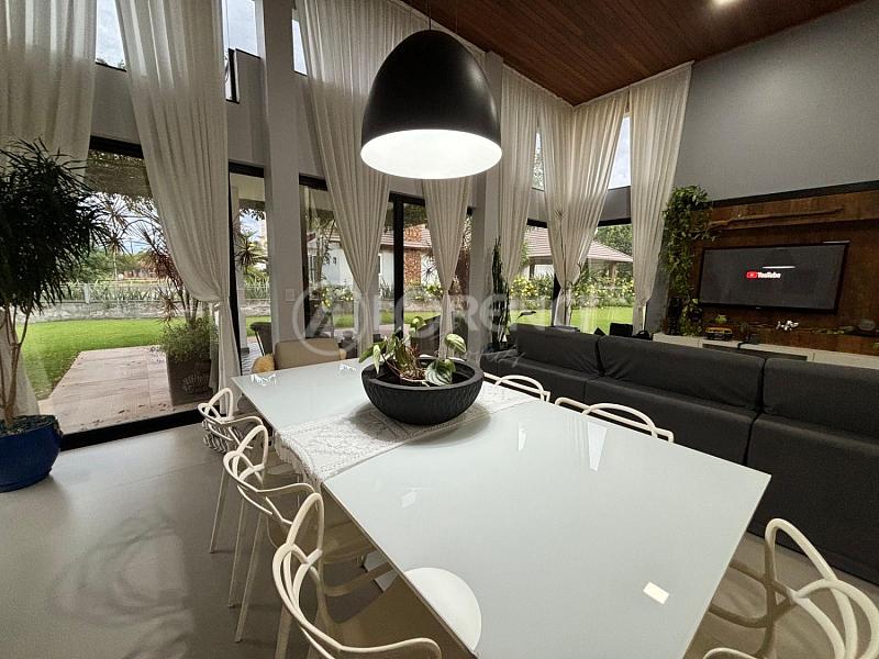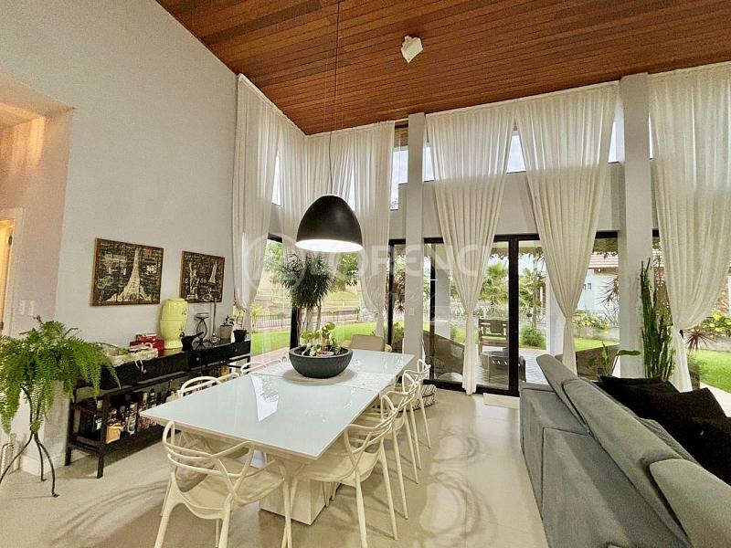 Belíssima casa localizada no condomínio Lago, que possui uma infraestrutura impecável, sendo a mais completa da região.A casa conta com a assinatura da Arquiteta Juliana, conhecida pelo bom gosto e estilo únicos. A área social é o coração da casa, destacando-se pelo lindo pé direito duplo e integração da área externa com a interna, criando um ambiente contemplativo à natureza.